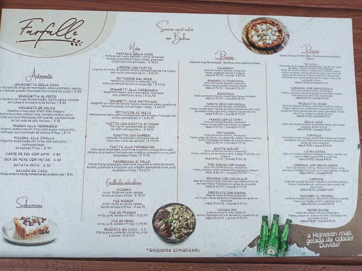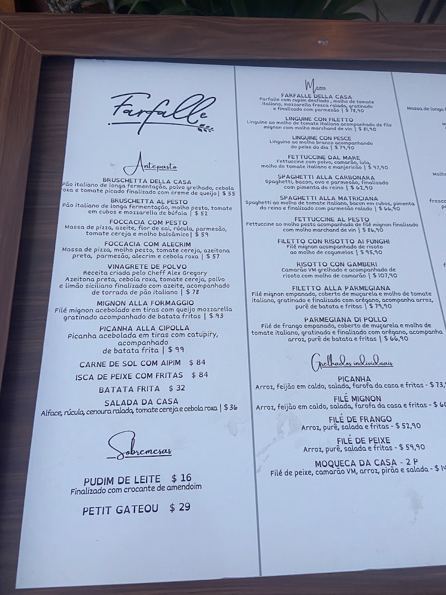 Introducing Farfalle Restaurante, a culinary gem nestled in the heart of Porto Seguro, Brazil. This haven for food enthusiasts captivates with its diverse and delectable menu, featuring standout dishes that are both comforting and innovative. Renowned for their mouthwatering pizzas, many patrons, like Wesley Da Silva, declare them among the best in Brazil, highlighting favorites like the octopus bruschetta that tantalizes the palate.